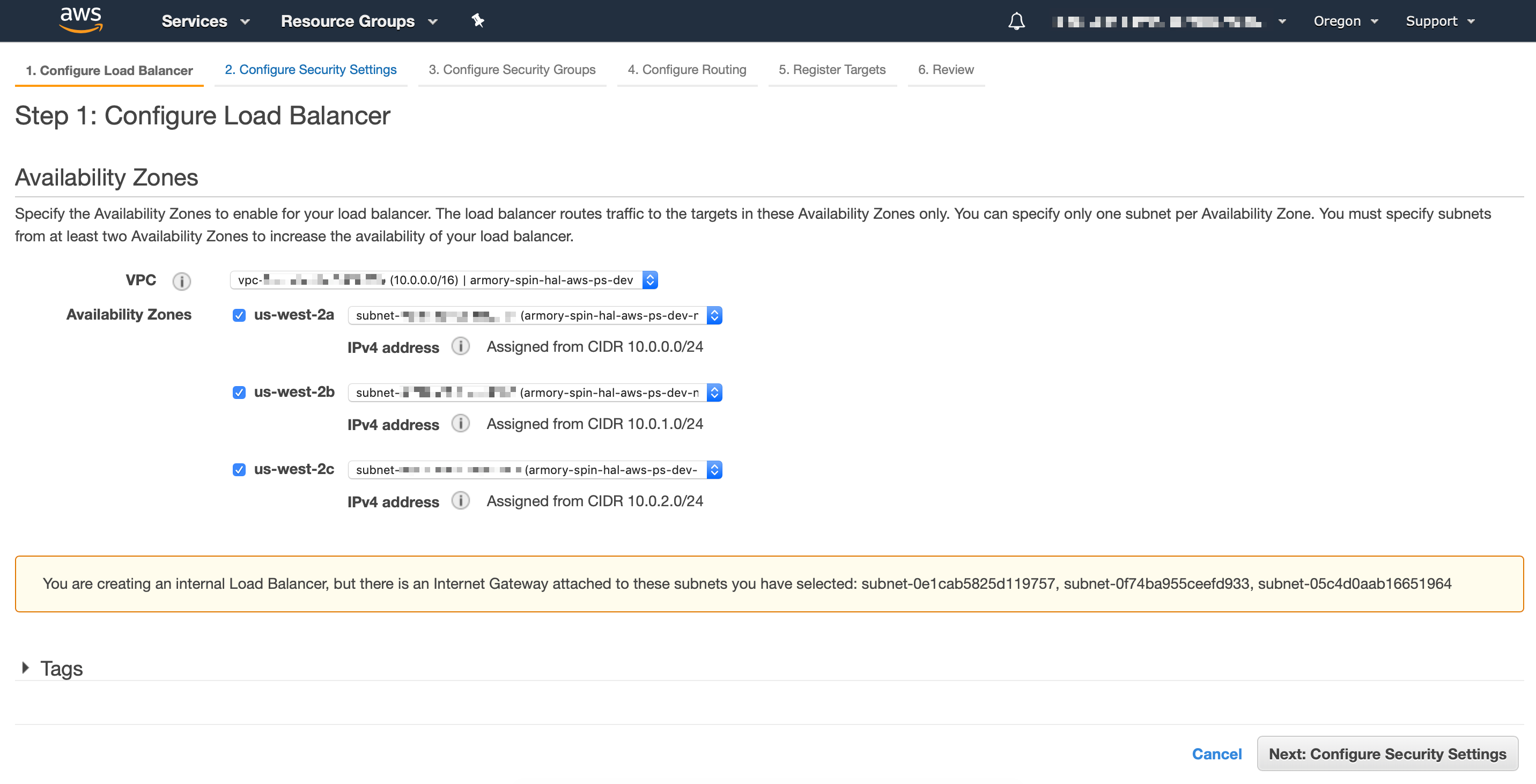 Step 2: Create AWS internal load balancers
