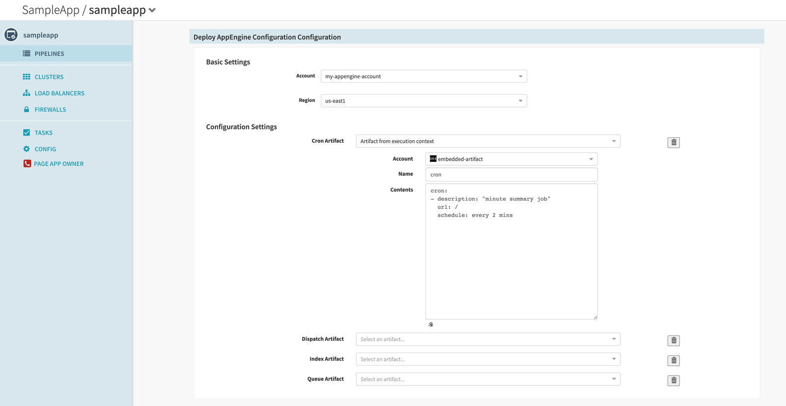 For example, appengine supports cron configuration. You can update or deploy cron configuration similar to how you deploy services. This stage replicates the functionality offered and allows you to deploy cron, dispatch, index, and queue configuration files to your appengine environments.