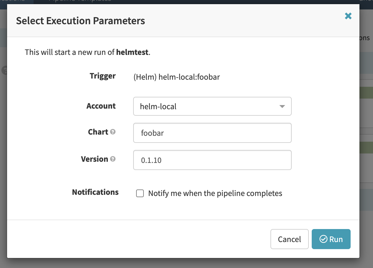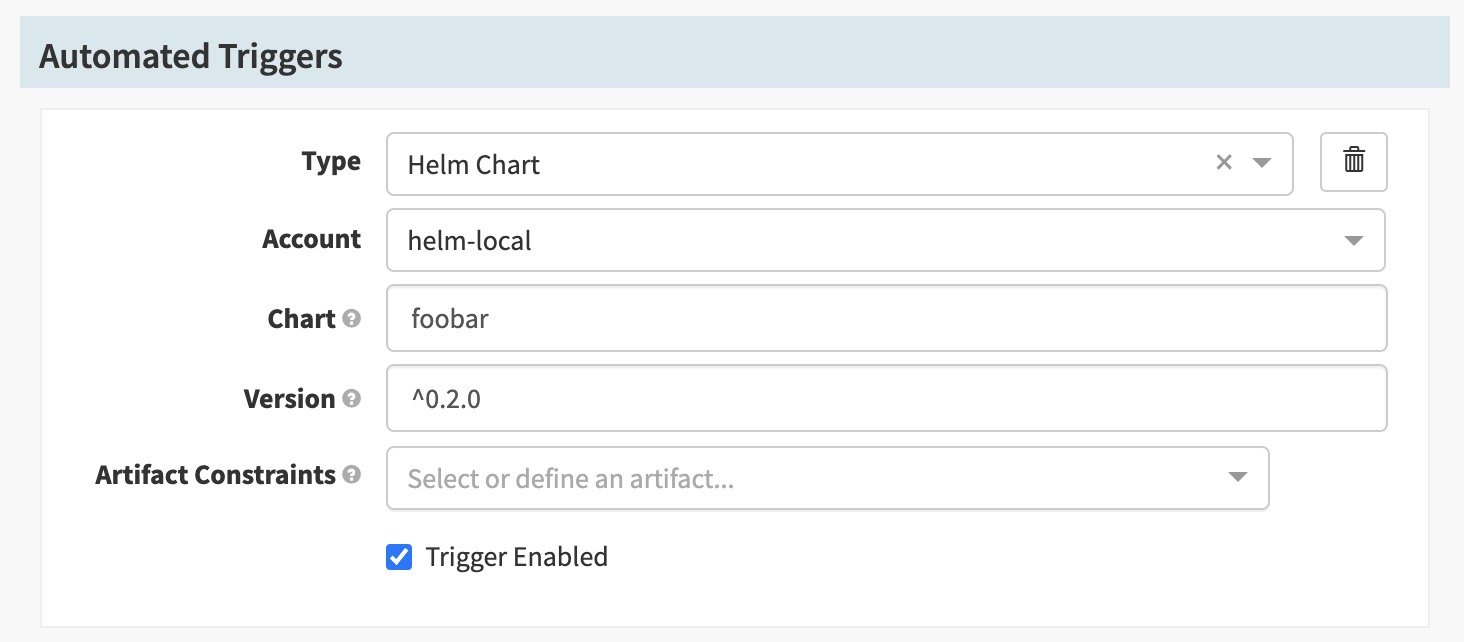 You can provide helm/index as a type when specifying an artifact path.